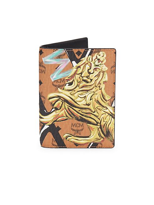 Logo-print passport case with regal lion graphic