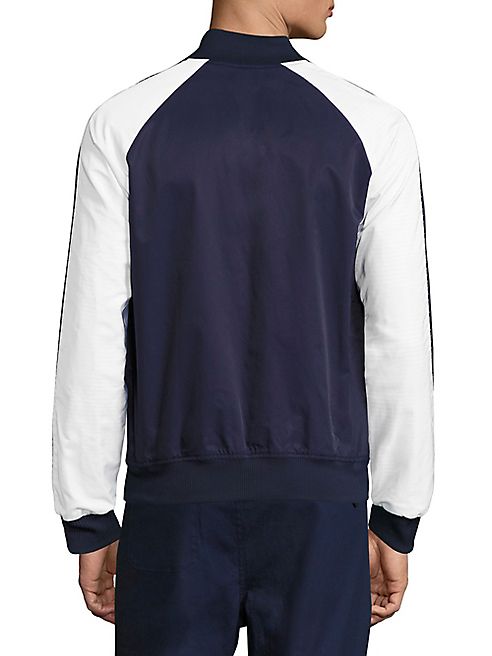 Reversible jacket with colorblock and striped design