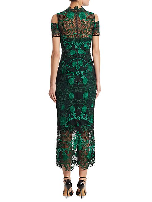 Marchesa Notte - Cold-Shoulder Guipure Lace Midi Dress