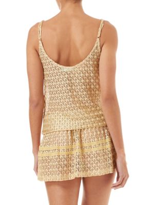 Embroidered beach dress finished in a metallic hue