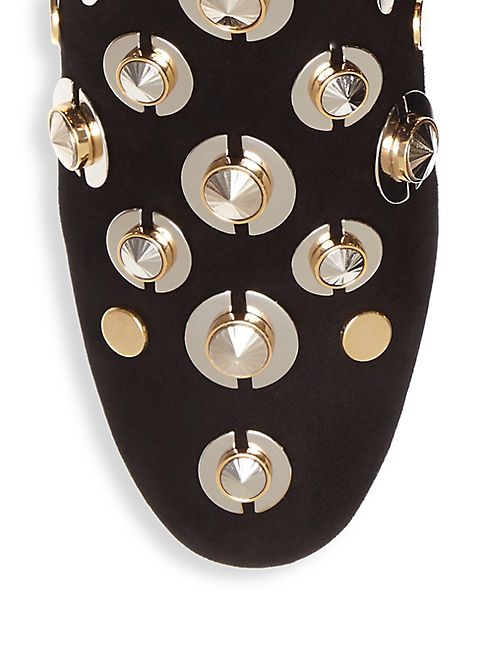 Lustrous embellishments adorn these lovely mules