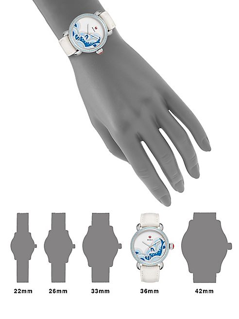 Michele Watches - Seaside Diamond, Topaz && Lizard-Embossed Leather Strap Watch