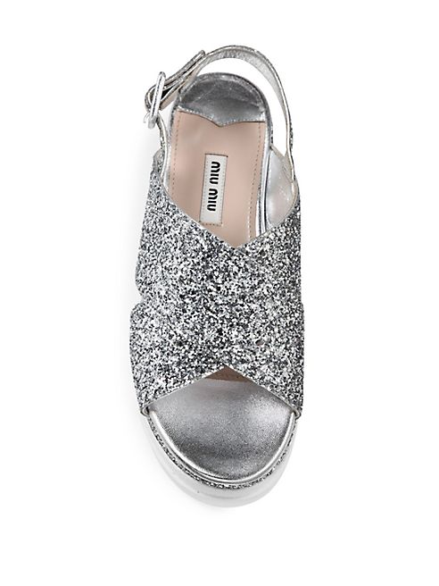 :Miu Miu - Glitter Crisscross Platform Slingback Sandals