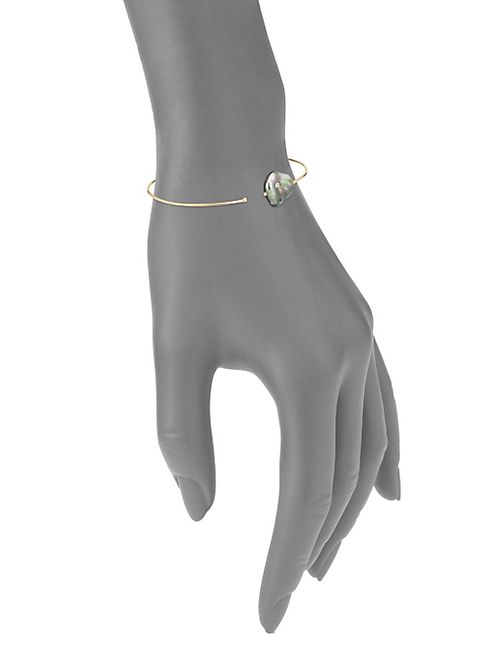 :Mizuki - Diamond, 10MM Gray Baroque Pearl & 14K Yellow Gold Thin Cuff