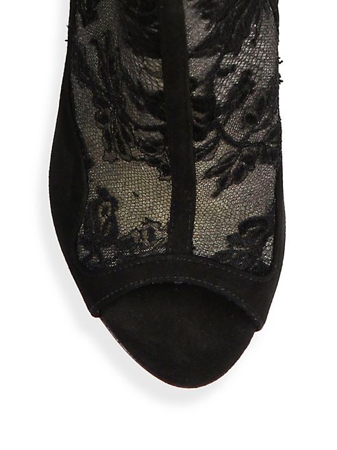 :Monique Lhuillier - Serena Lace & Suede Peep Toe Booties