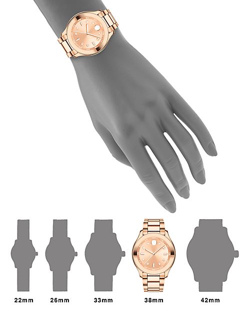 Round, polished rose gold ion-plated stainless steel case, 38mm (1.5")