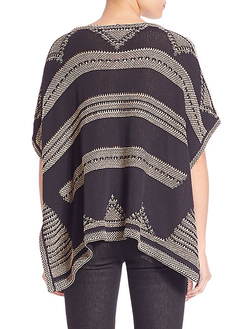 Designed with a bold geometric pattern and a relaxed silhouette, this poncho is a go-to style for transitional climes.
