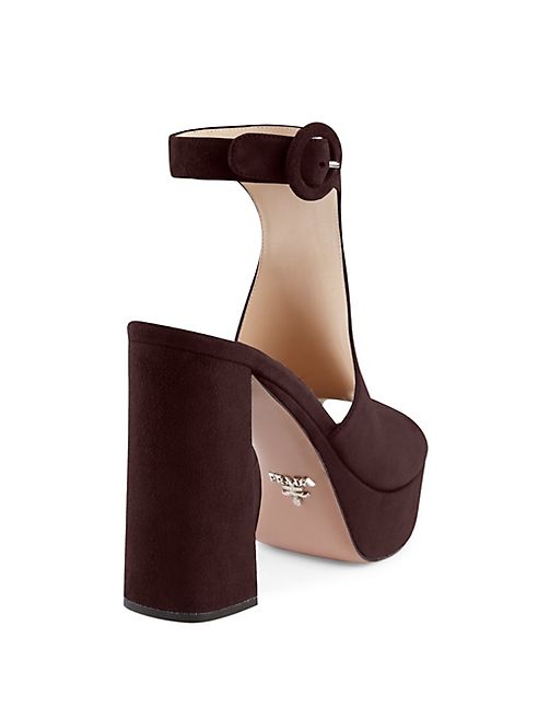 Prada - Cutout Suede Peep Toe Platform Sandals