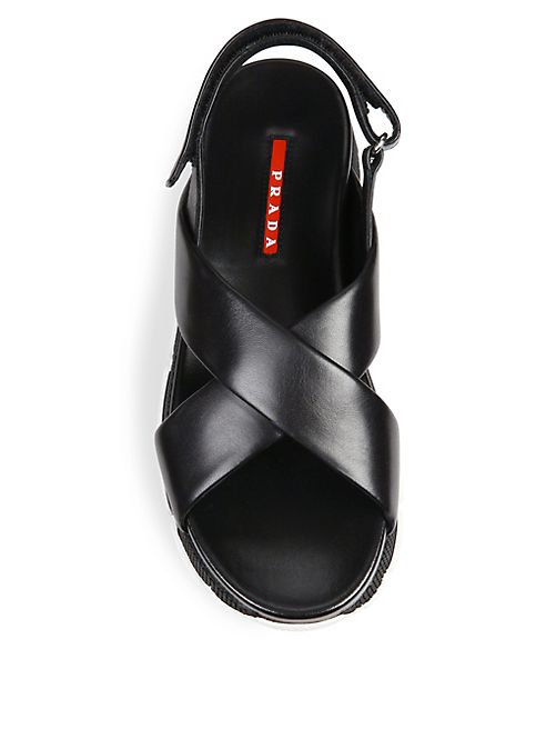 :Prada - Leather Crisscross Platform Slingback Sandals