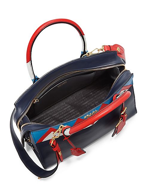 Structured leather tote with multicolor zigzag design