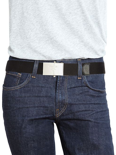 Reversible belt in black and antracite nylon with PRADA logo plaque