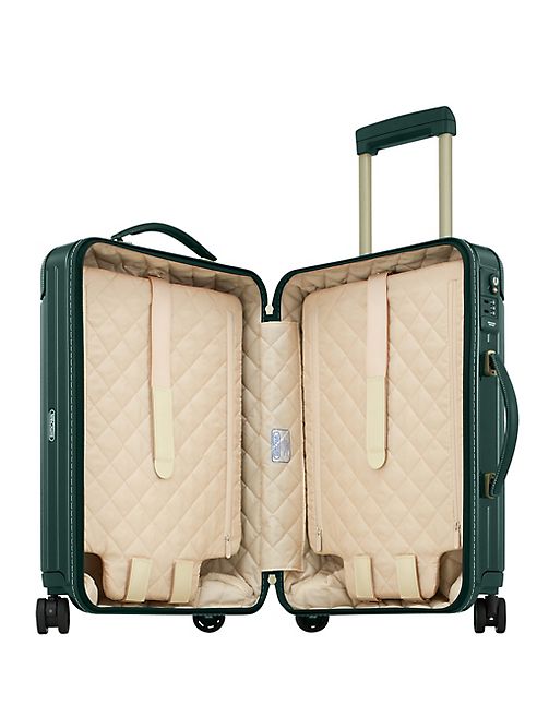Classic textured spinner suitcase offers ample space for storing your apparels, accessories and essentials.