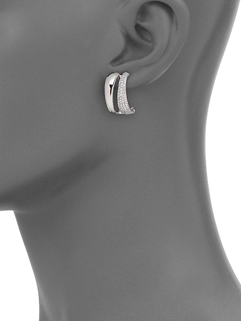 From the Scalare Collection. Sections of smooth 18k white gold and shimmering diamond pavé arc to shape a sophisticated design of earring.