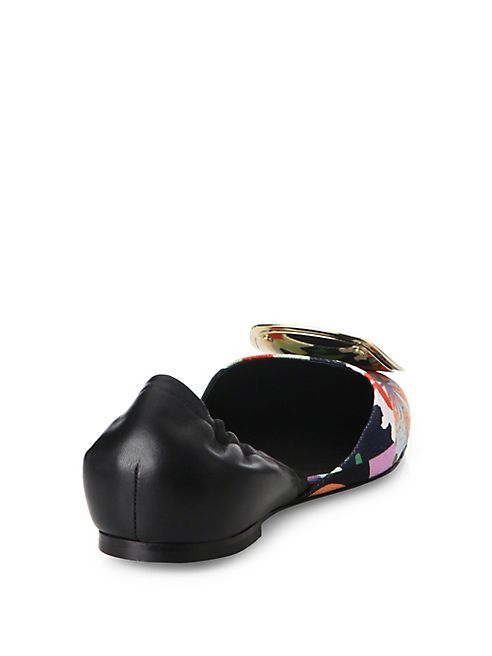 Roger Vivier - Floral Leather & Canvas Ballet Chips Flats