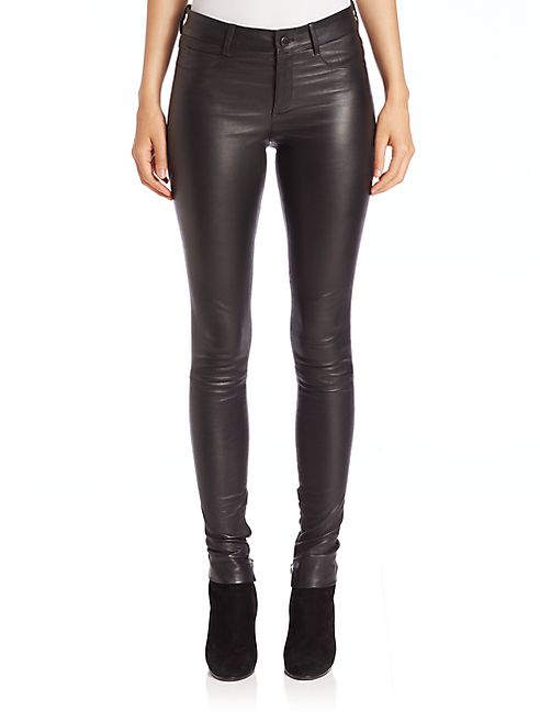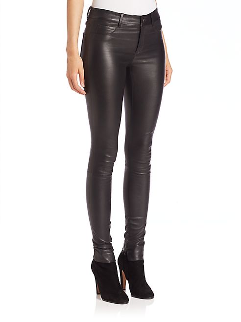 EXCLUSIVELY AT SAKS FIFTH AVENUE. Leather pants, cut in a skinny silhouette, are the foundation to any off-duty look.