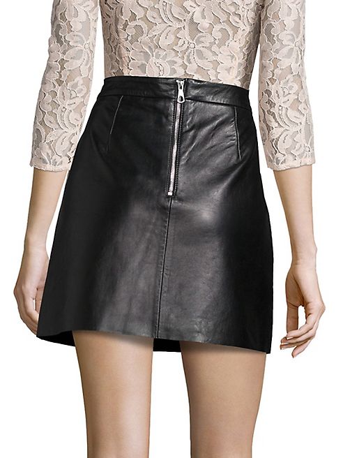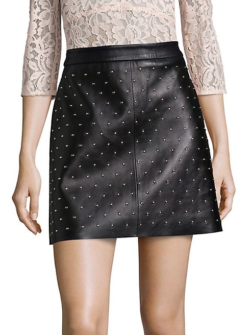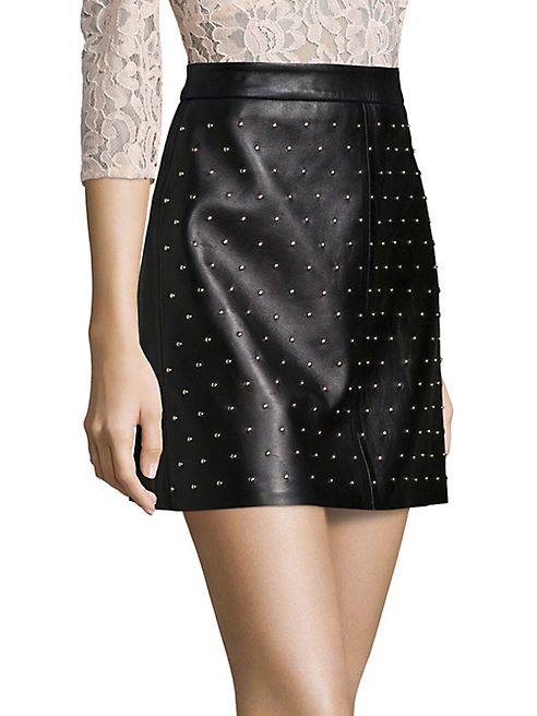 - Leather A-line mini skirt with edgy studded front