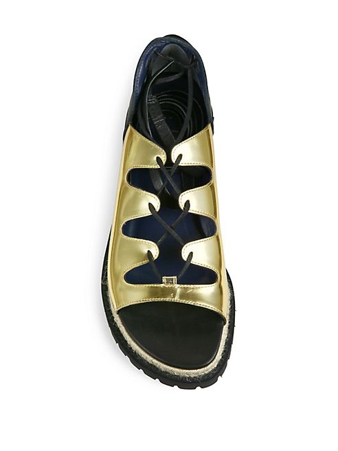 :Sacai - Two-Tonal Leather Espadrille Wrap Sandals