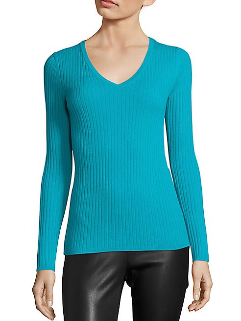:Saks Fifth Avenue Collection - Ribbed Long Sleeve Cashmere Top