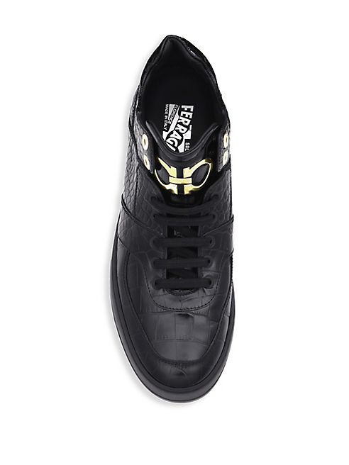 :Salvatore Ferragamo - Monroe Mid Top Croc Embossed Calfskin Sneaker