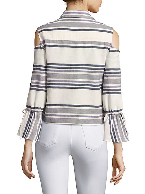 :Splendid - Striped Cold-Shoulder Bell Sleeve Shirt