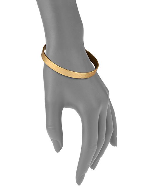 A rich 24k gold-dipped finish elevates the appearance of this otherwise simple bronze bangle bracelet - cast in classic oval silhouette, but captivating for its gorgeous organic surface.