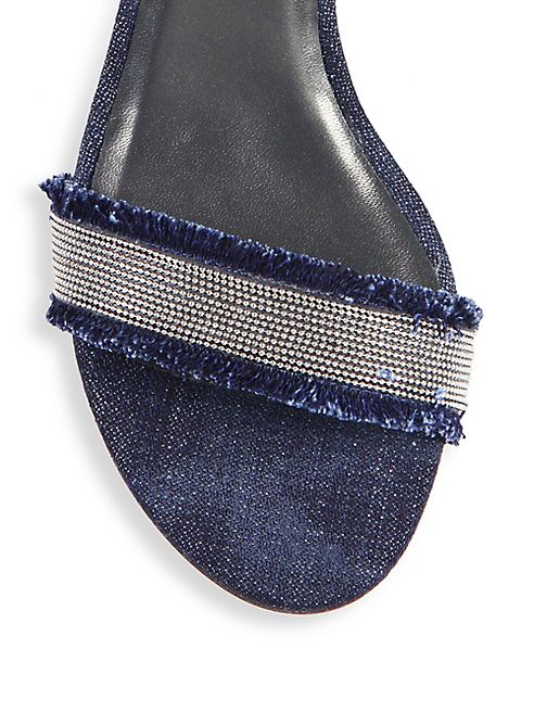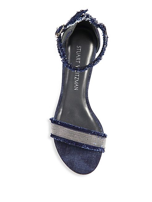 Stuart Weitzman - Chaingang Frayed Denim Block Heel Sandals