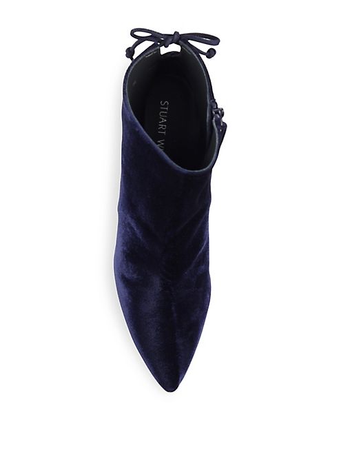 :Stuart Weitzman - Grandiose Back-Tie Velvet Block-Heel Booties