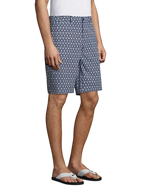 Sharp geometric-printed shorts with 4-way stretch