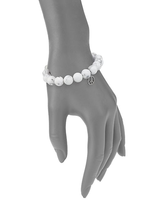 :Sydney Evan - Diamond & Howlite Beaded Peace Sign Charm Bracelet