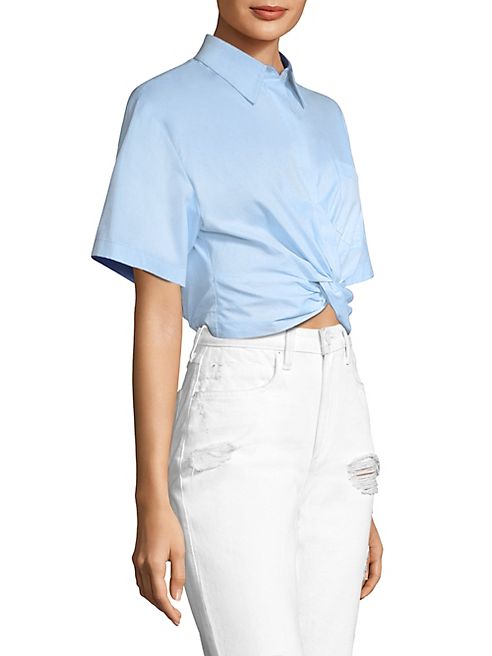 :T by Alexander Wang - Cotton Twill Twisted Front Cropped Shirt