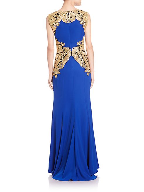 Tadashi Shoji - Metallic Lace-Trimmed Crepe Gown