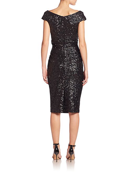 Cocktail-ready silhouette elevated by allover sequin embellishment