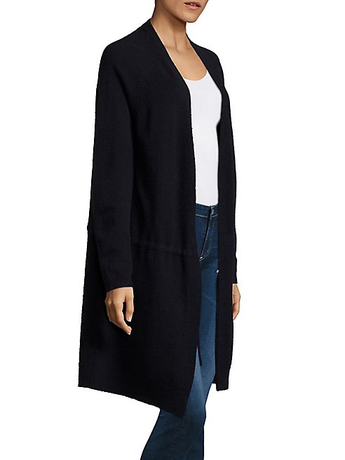 Tie waist cinches long-line cashmere cardigan