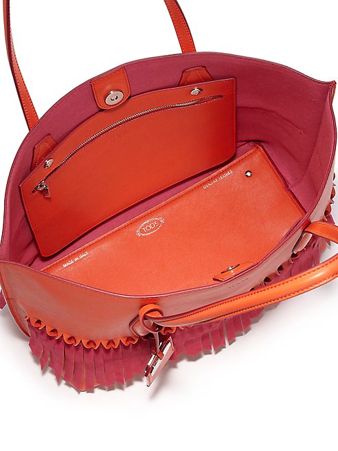 :Tod's - Joy Medium Two-Tone Fringed Leather & Suede Tote