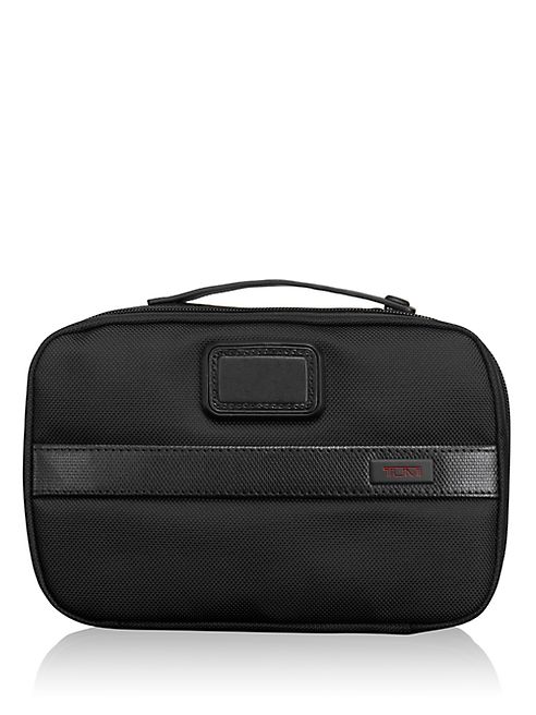 Characterized by a streamlined design, clean and modern styling details and advanced functionality, this versatile kit elevates your travel and business experiences. The embossed leather carry handle unsnaps to fit over fixtures, while the split design lets the kit sit easily on a variety of surfaces and allows for packing versatility.