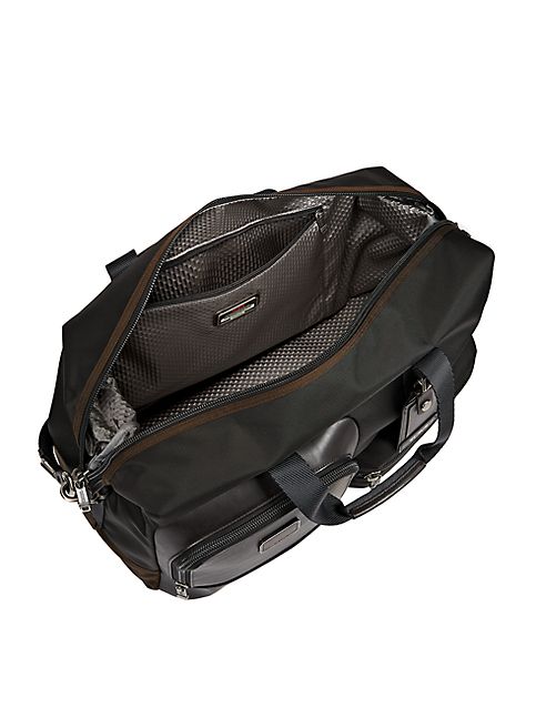 Crafted from ultra-durable ballistic nylon, this sturdy and equally stylish travel satchel is equipped with a multitude of smart inside and outside organizational pockets.