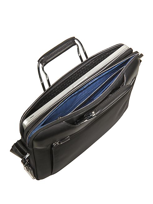 Slim, multi-pocket brief accommodates 15" laptop