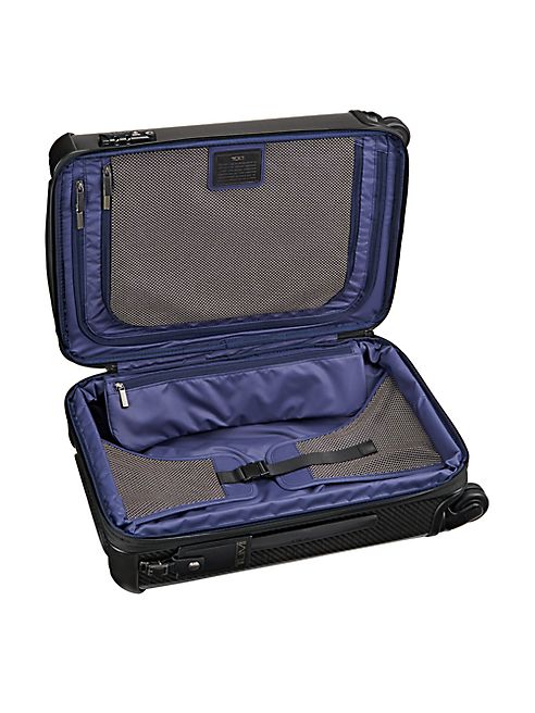 This compact wheeled carry-on design is for those who travel domestically and internationally. It expands 2" for extra capacity when you need it and has two packing compartments. It features a hanger bracket for suits and longer garments, and interior pockets for accessories.