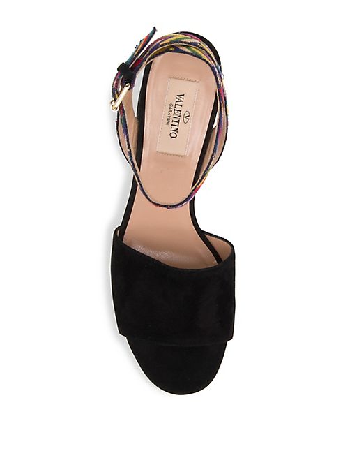 :Valentino - Native Embroidered Suede Block-Heel Sandals