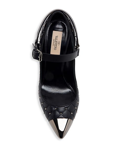 :Valentino - Rockstud Spike Leather Cap Toe Mary Jane Pumps