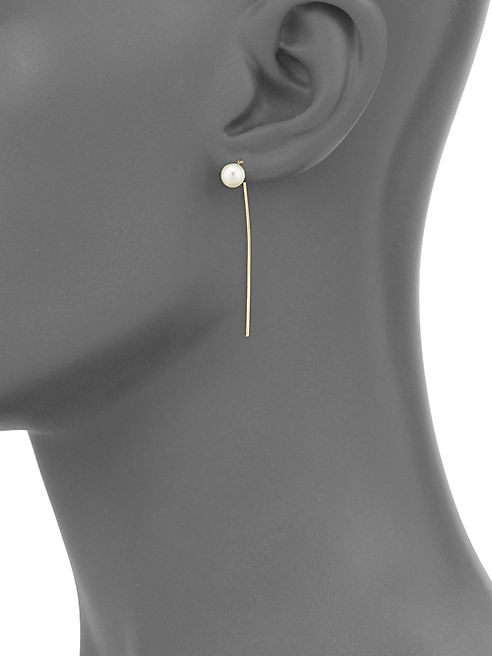 :Zoe Chicco - 6MM White Freshwater Pearl & 14K Yellow Gold Wire Earrings