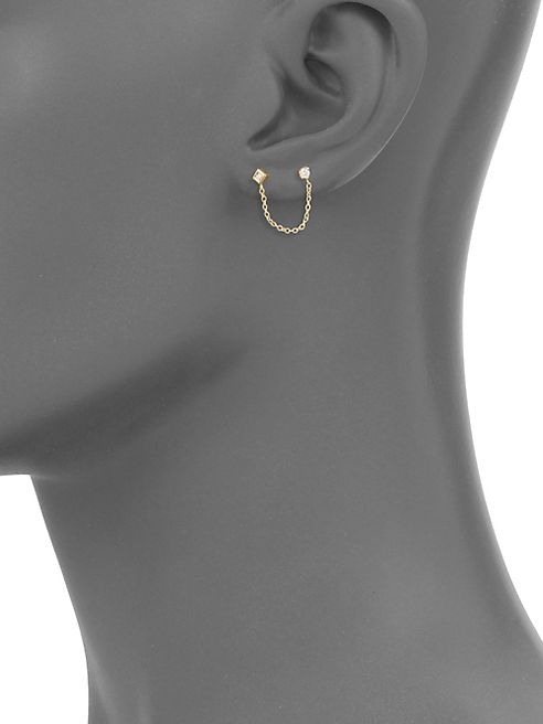 :Zoe Chicco - Diamond & 14K Yellow Gold Chain Double Single Stud Earring