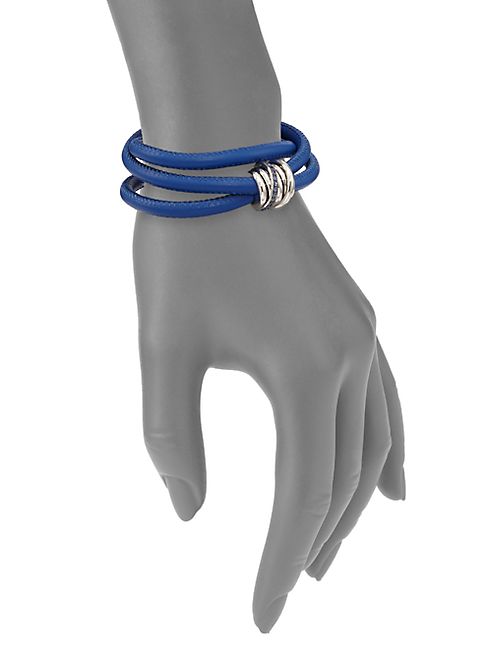de GRISOGONO - Allegra Blue Sapphire, 18K White Gold & Leather Wrap Bracelet/Denim