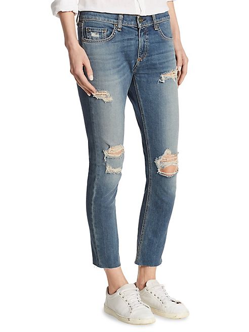 :rag & bone/JEAN - Dre Distressed Raw-Edge Capri Jeans/Delamo